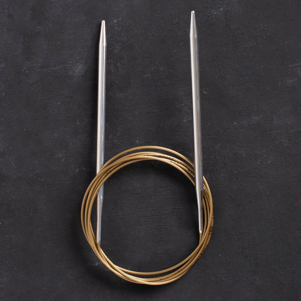 Addi Klasik Misinalı Şişler altın rengi misinasına ve pirinç uçlara sahiptir. Şişlerin hafif kaygan yapısı daha kolay örgü örme imkanı sunar.