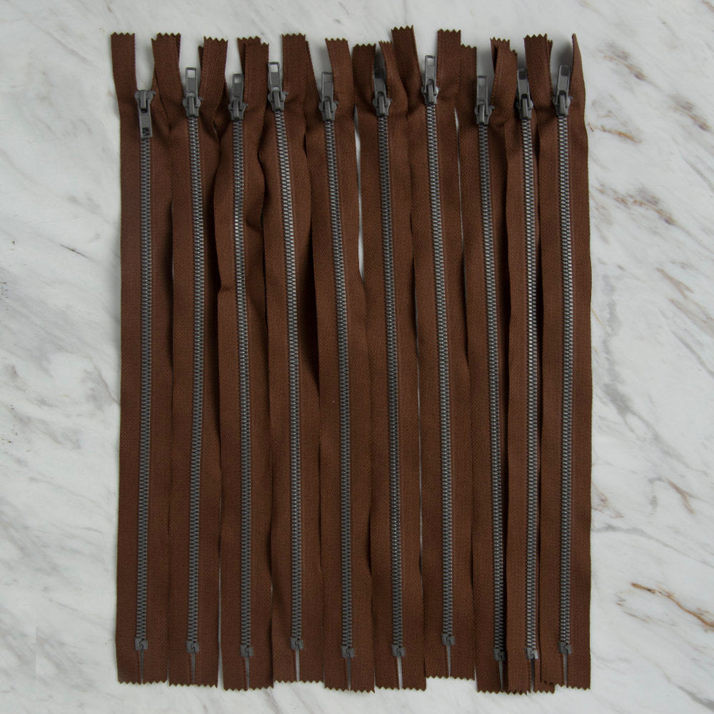 Loren Crafts 10 adet 35 Cm Kahverengi Dipli Kemik Fermuar