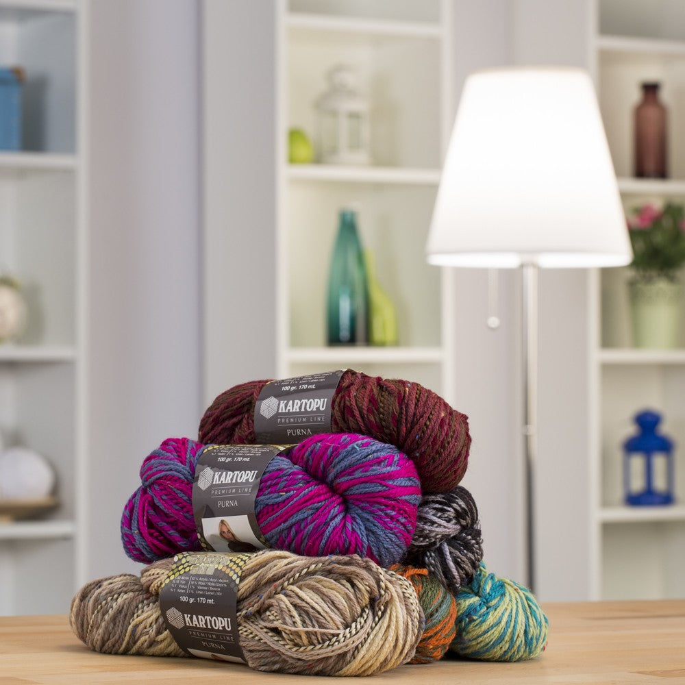 Dört farklı iplik dört farklı renk geçişi tek yumakta bir arada. Kartopu Purna ileri teknolojimizin en yeni ürünü aynı zamanda son derece ekonomik ve eşsiz. Kartopu Purna ile yapacağınız tasarımların sınırı yok. Tüm örgü modellerinizde güvenle tercih edebilirsiniz.