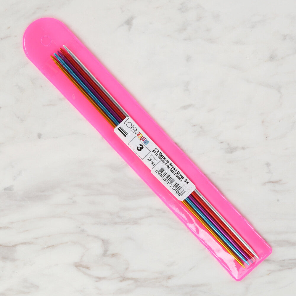 Loren Crafts 3 mm 20 cm Renkli Metal Çorap Şişi - LRN317