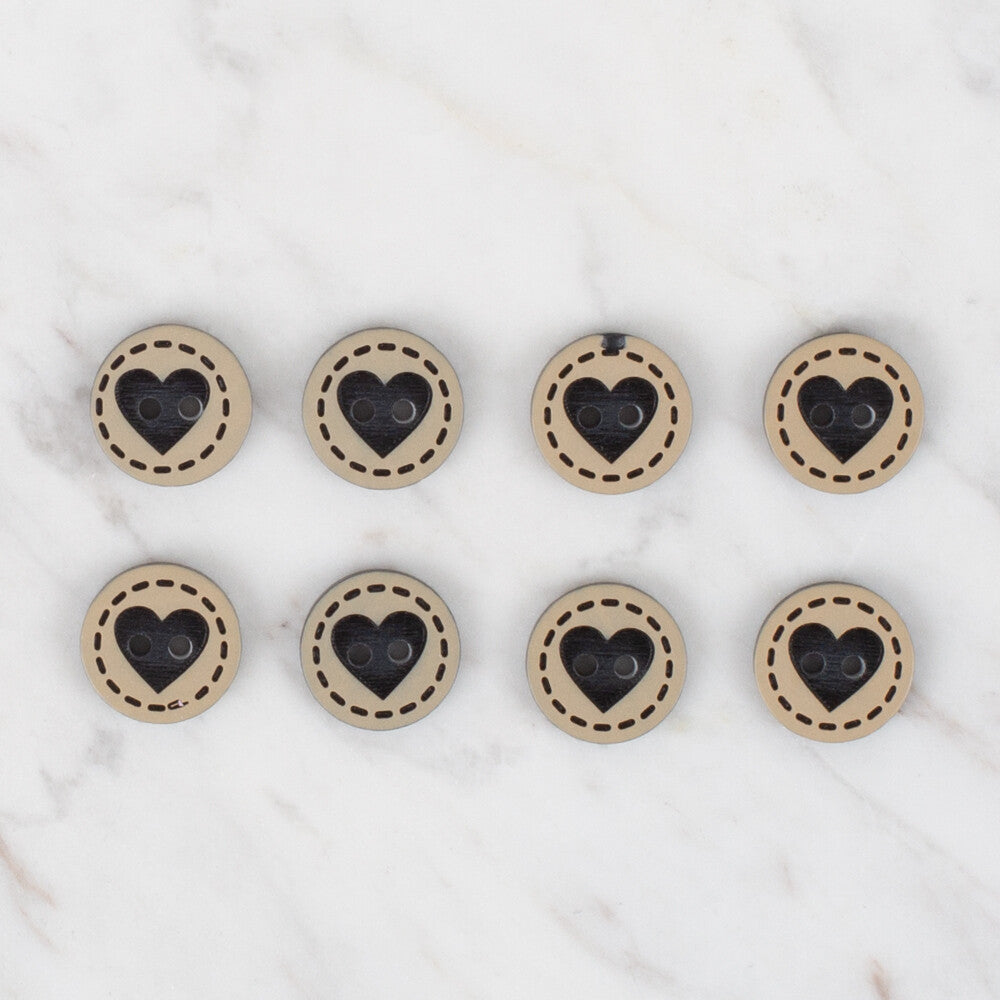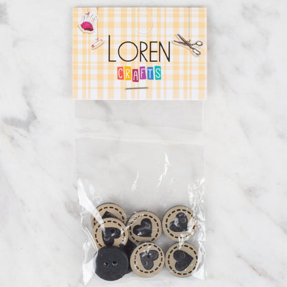 Loren Crafts 8'li Siyah Kalp Düğme - 320