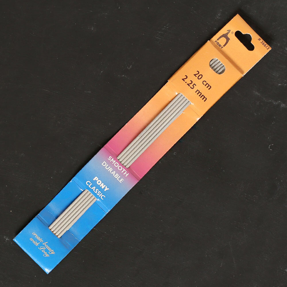 Pony'nin en klasik ve en popular çorap şişidir. Açık gri renk alüminyumdan yapılmış hafif ve biraz kaygan olduğu için uzun süre takılmadan rahatça örebilirsiniz.
